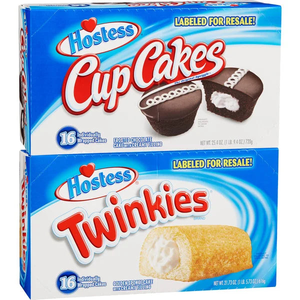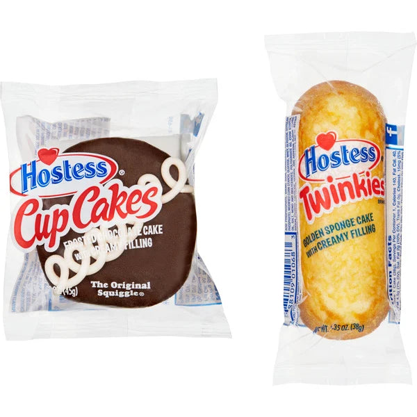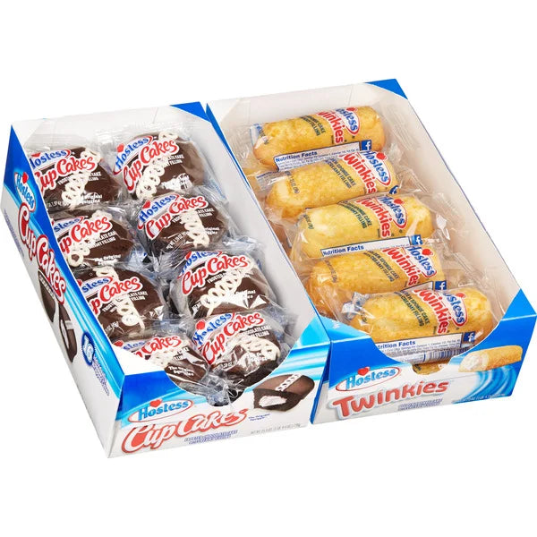 Hostess Cupcakes & Twinkies, 32 Count, offers a delightful assortment of classic treats. Each package contains a mix of delicious Hostess Cupcakes and Twinkies, with their signature flavors and textures. These individually wrapped snacks are perfect for lunchboxes, snack time, or sharing with friends and family. Enjoy the iconic chocolate cupcakes with creamy filling and the golden sponge cakes with creamy filling, all in one convenient pack.