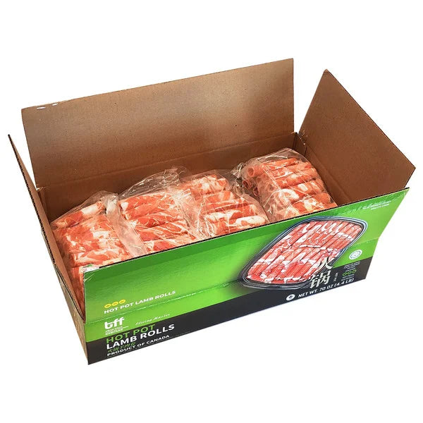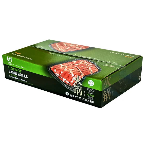 Hot Pot Halal Lamb Rolls come in a 4.4-pound pack of unseasoned, raw lamb prepared in roll form. Certified halal and made in Canada, these lamb rolls are ideal for hot pot, grilling, sautéing, or oven cooking. They’re kept frozen to preserve freshness and offer a versatile protein option for a variety of dishes.