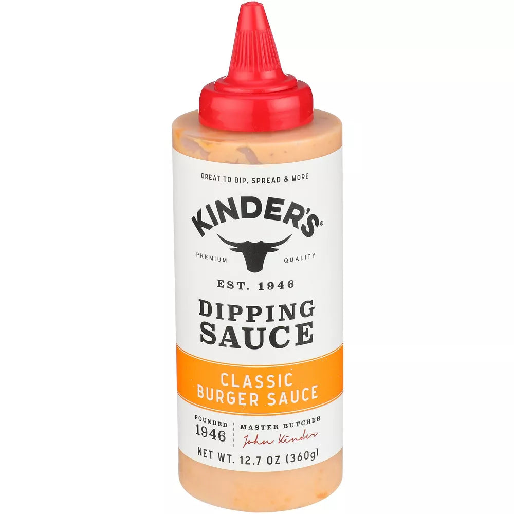Kinder's Dipping Sauce Classic Burger, 12.7 oz - This creamy, tangy sauce with a hint of BBQ is perfect for adding flavor to your burgers, fries, sandwiches, and more. It's gluten-free, non-GMO, and contains no high fructose corn syrup. Enjoy the rich, savory taste of Kinder's Dipping Sauce Classic Burger in every bite.