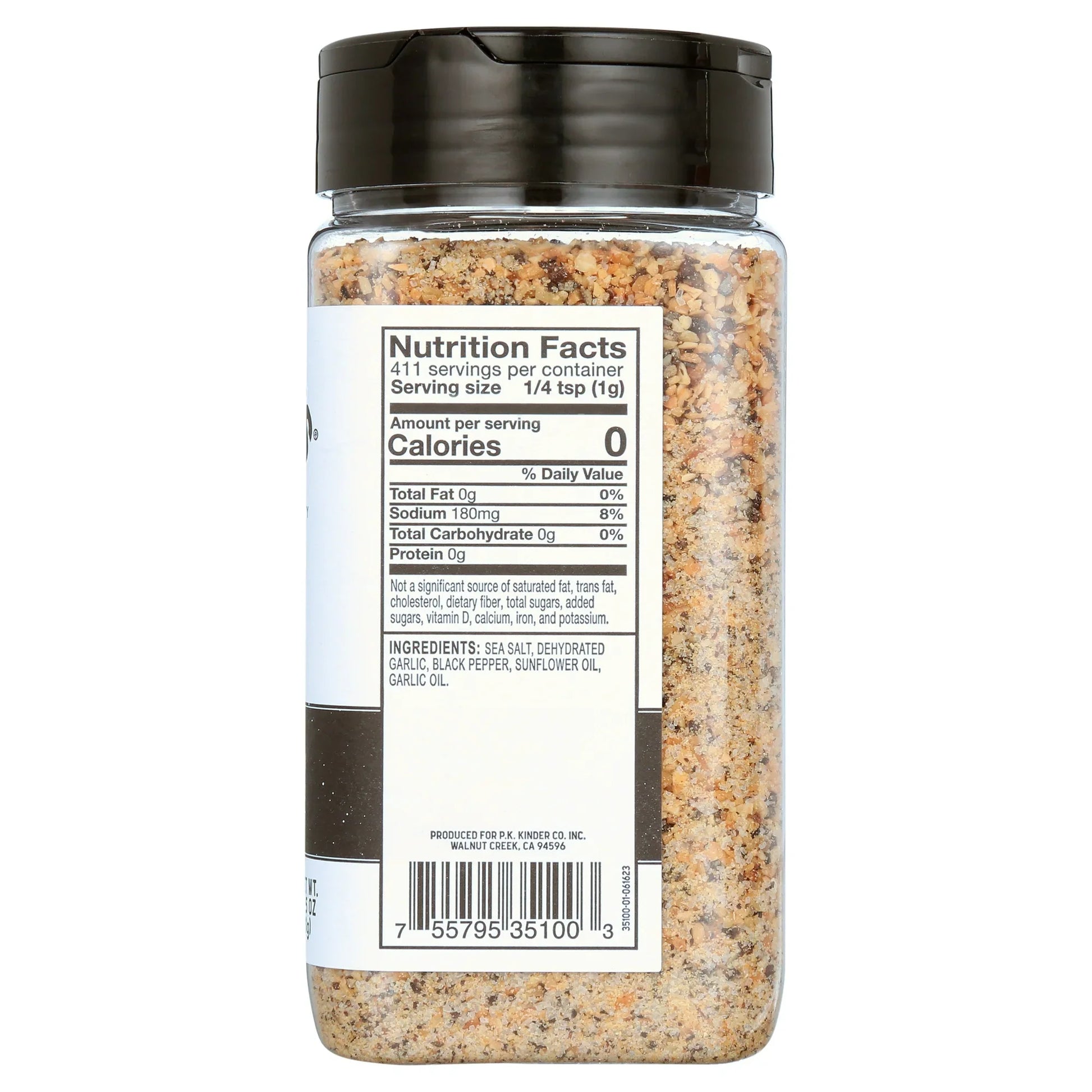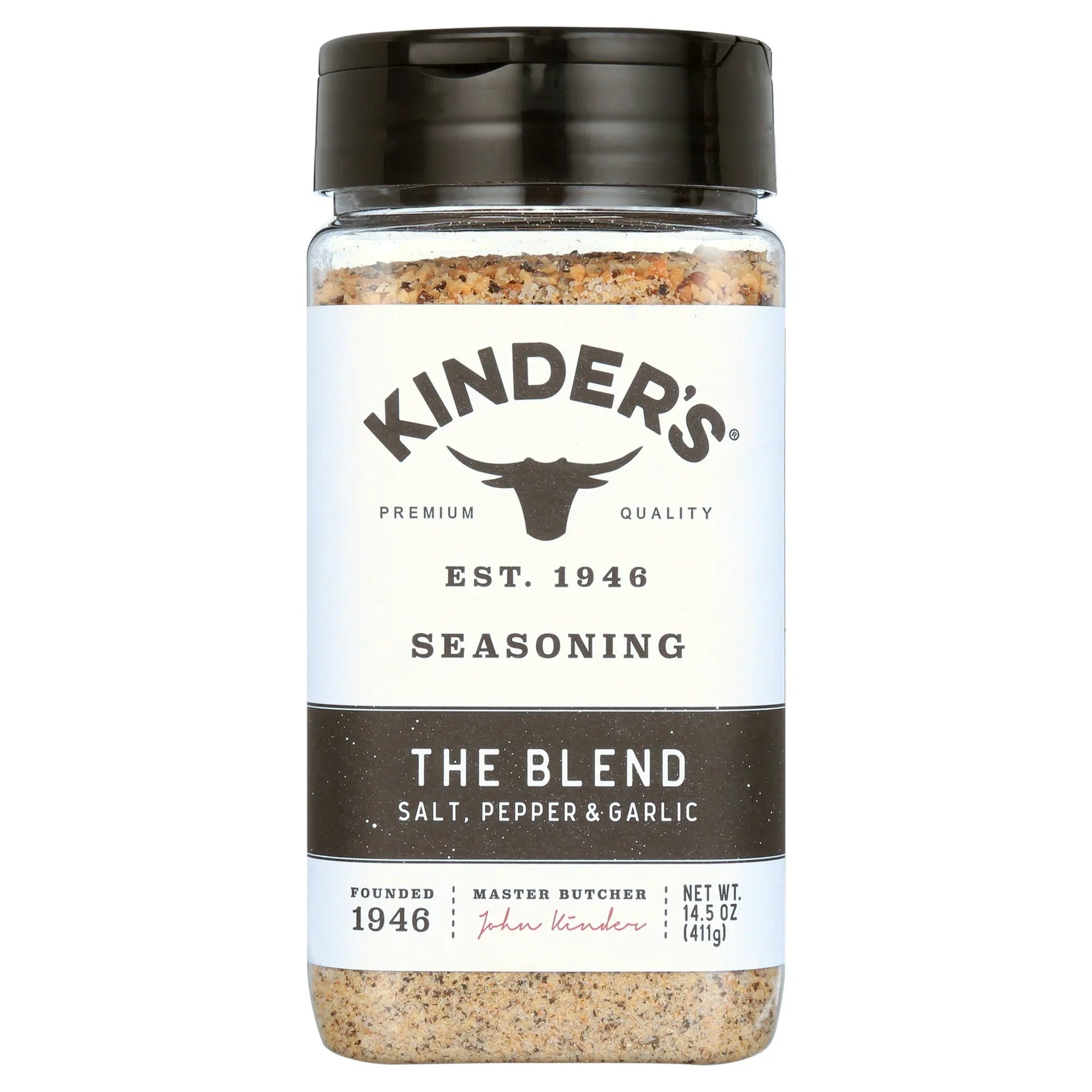 Kinder's The Blend Seasoning, 14.5 oz, is a versatile and flavorful mix of salt, pepper, and garlic. This seasoning is perfect for enhancing the taste of a wide range of dishes, from meats and vegetables to salads and more. Its balanced blend of spices makes it an ideal all-purpose seasoning for your kitchen.