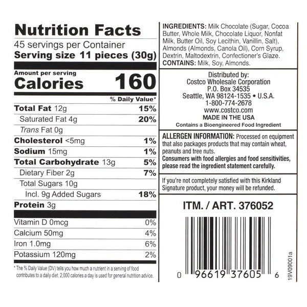 Kirkland Signature Almonds, Milk Chocolate, 3 lbs