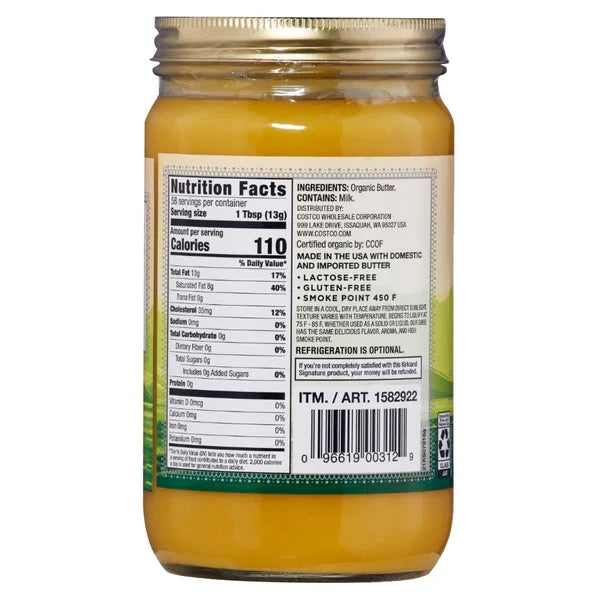 Elevate your cooking with Kirkland Signature Organic Ghee, a rich and aromatic clarified butter crafted using traditional South Asian methods. This pantry essential delivers a smooth, nutty flavor and high smoke point, making it perfect for sautéing, roasting, or adding a luxurious finish to your favorite dishes.