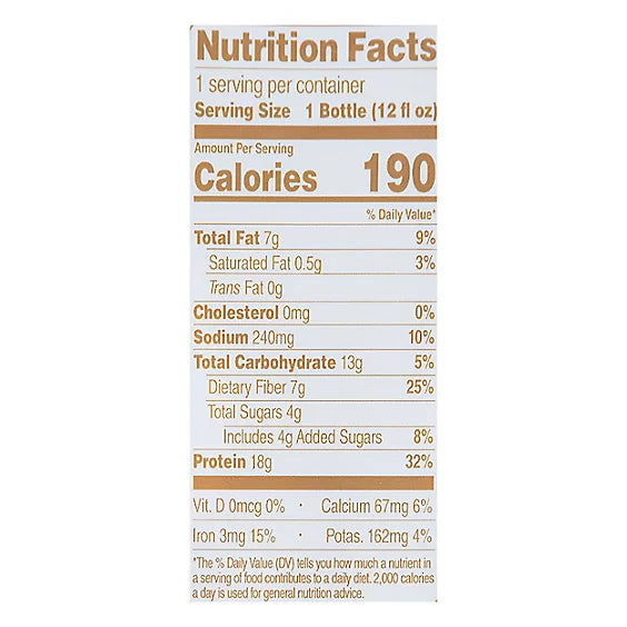 Koia Cocoa Protein Shake in a 32 oz size is a delicious and nutritious plant-based protein shake made from a blend of brown rice, pea, and chickpea proteins. It's rich in flavor with a hint of cocoa, and it's free from dairy, gluten, soy, and artificial additives. This shake is perfect for a quick and healthy meal replacement or snack, providing 32 grams of protein and only 4 grams of sugar. It's also vegan, kosher, and non-GMO, making it a great choice for anyone looking to fuel up with wholesome ingredients.