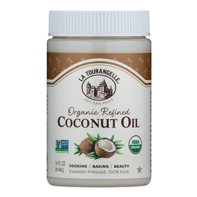 La Tourangelle Organic Refined Coconut Oil is a versatile and high-quality oil perfect for various culinary uses. This 14 oz bottle of refined coconut oil has a neutral flavor and a high smoke point, making it ideal for sautéing, baking, frying, and more. It's crafted from organically grown coconuts and refined using a chemical-free process, ensuring a pure and healthy product. Enjoy the benefits of this organic coconut oil in your favorite recipes or as a nourishing addition to your daily routine.