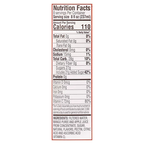 Langers Mongo Mango Juice, 64 oz, offers a delicious and refreshing beverage option. This juice cocktail is made from a blend of mango puree and apple juice from concentrate, providing a bold and tropical flavor. It is non-GMO and contains no high-fructose corn syrup, ensuring a wholesome and natural drink. Each serving provides a good source of Vitamin C, making it a nutritious choice for your daily hydration.