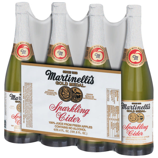 Martinelli's Sparkling Cider Apple, 25.4 oz, 4 Count, offers a delightful and refreshing beverage option. Each package contains four bottles of 25.4 fluid ounces of sparkling apple cider made from 100% U.S. grown fresh apples. This non-alcoholic cider is naturally carbonated and free from added sugars, preservatives, and artificial flavors. It's perfect for celebrations, gatherings, or simply enjoying a fizzy and fruity drink.