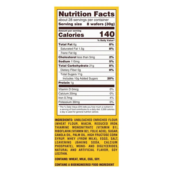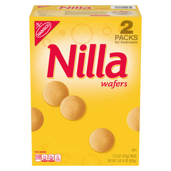NILLA Wafers Cookies, Vanilla flavor, come in a pack of two 15 oz boxes filled with sweet, crispy vanilla wafers. These classic cookies are perfect for snacking on their own or pairing with milk, coffee, or tea. They’re also a popular ingredient in desserts like banana pudding, parfaits, and ice cream sandwiches. Kosher certified and sealed for freshness, they offer a nostalgic taste that’s great for sharing or enjoying anytime.