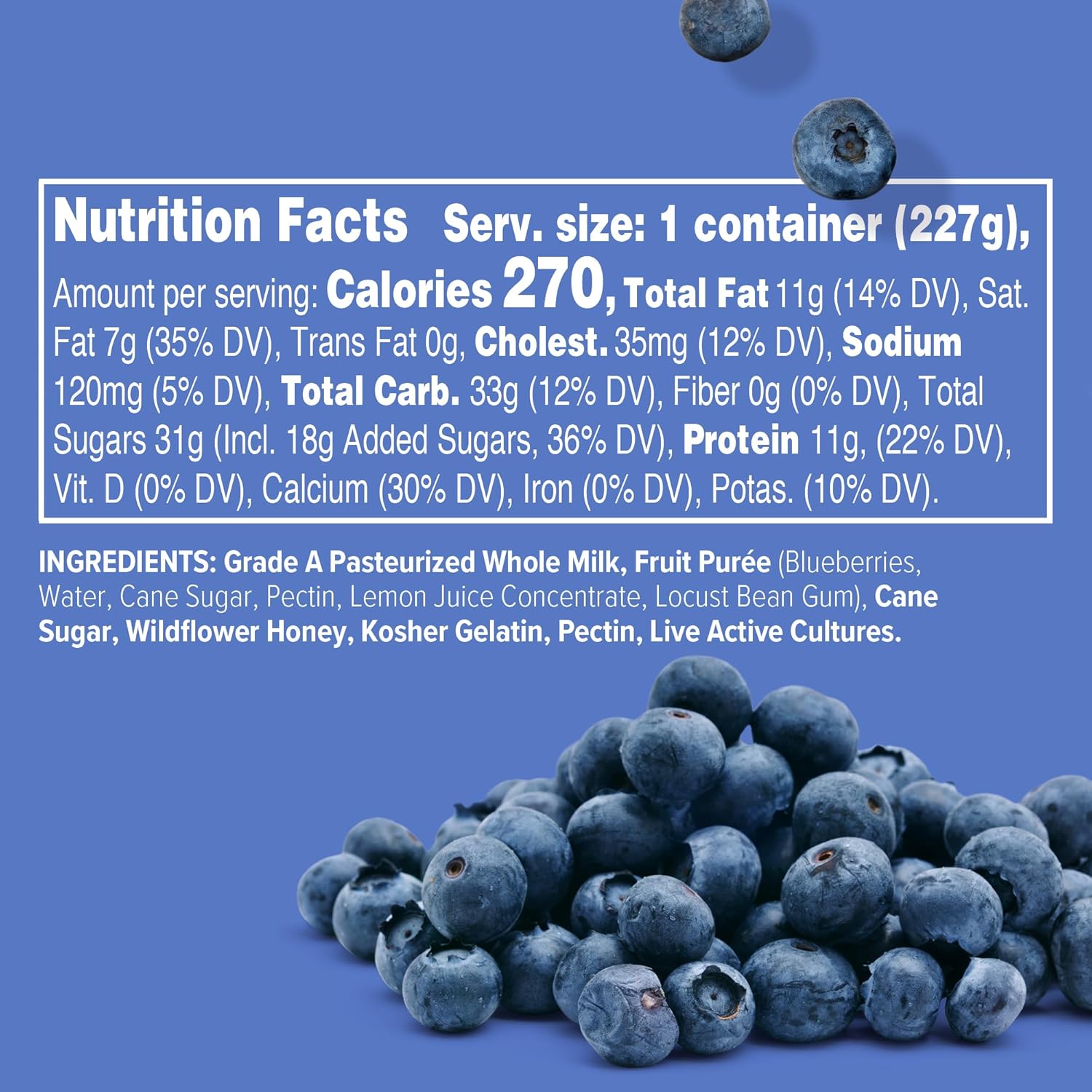Sure, you’ve tried blueberry yoghurt, but blueberry noosa is in a league of its own. Off-the-charts in yum, our blueberry flavor inspires cravings like no other. Sweet, juicy blueberry purée is hidden beneath our luscious, creamy whole milk yoghurt for satisfaction in every spoonful. Blueberry noosa yoghurt is made with Grade A whole milk that is lightly sweetened with a tasty touch of wildflower honey and finished with just the right amount of juicy blueberries. Either swirl the blueberry purée into our sweet, yet tangy whole milk yoghurt to enjoy it mixed together or savor the flavors separately. Any way you scoop it is perfect! Each tub of noosa yoghurt is gluten free, made with live and active cultures, and packed with 11g of protein. Our 8oz tub is the perfect size to have with breakfast, curb your hunger between meals, or to satisfy your sweet tooth. Grab a spoon and try it for yourself – tasting is believing.