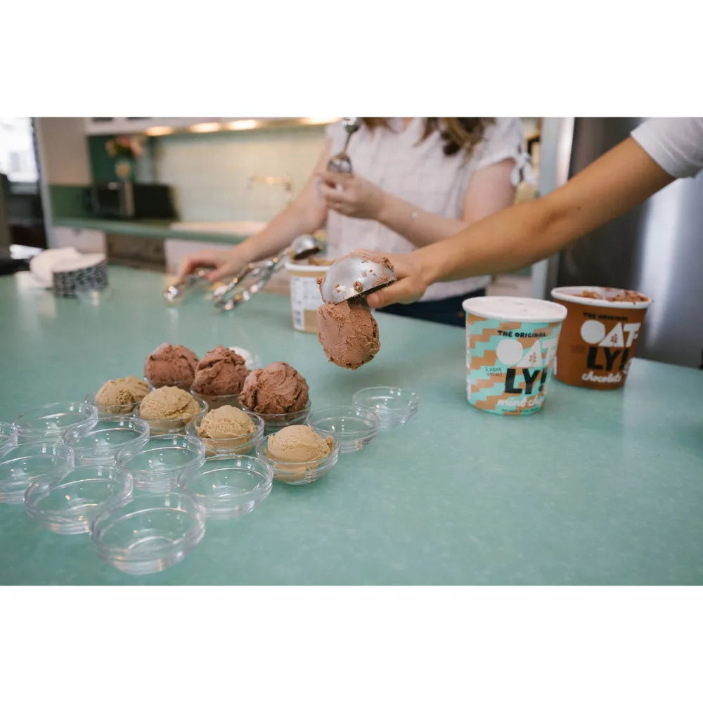 This one deploys a bold chocolate flavor that lets you know at first spoonful that it would like to extend a hand and make a proper introduction. To be slightly more specific, Joakim — our product development lead who moved from Malmo to New Jersey in order to bring his genius Oatly product innovation secrets to the US — says it tastes like a frozen creamy ganache of chocolate, without any malty/chocolate milk powder distractions. And that’s straight from the guy who created it, not website-writer-person marketing hype. So when you taste it, feel free to whisper “Thank you, Joakim” or, you know, whatever feels natural.