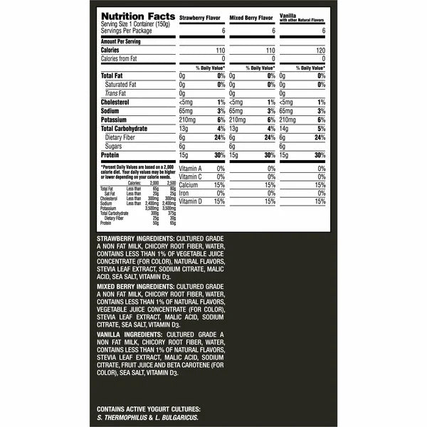 Dannon Oikos Triple Zero Yogurt Variety Pack, 18 ct, 5.3 oz, offers a delicious and nutritious snack option for any time of day. This variety pack includes three flavors: Mixed Berry, Peach, and Strawberry, providing a delightful mix of tastes to suit different preferences. Each yogurt cup is packed with 15 grams of protein, making it a great choice for a post-workout snack or a quick breakfast. With zero added sugar, zero artificial sweeteners, and zero fat, these yogurts are a healthy option that doesn't compromise on flavor. The convenient 5.3 oz cups are perfect for on-the-go snacking, ensuring you have a tasty and satisfying treat whenever you need it.