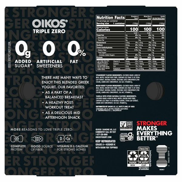 Dannon Oikos Triple Zero Yogurt Variety Pack 18 ct, 5.3 oz