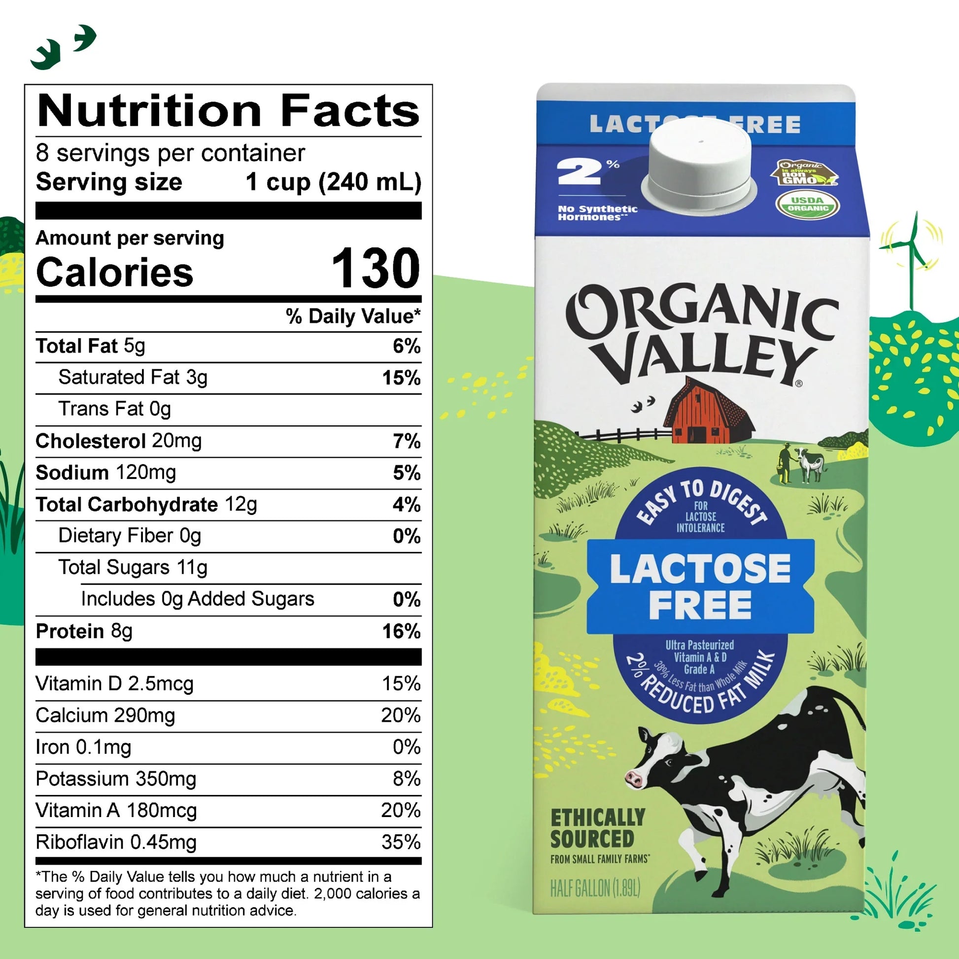 Organic Valley Lactose Free Milk 2%, 64 oz, offers a nutritious and wholesome choice for those with lactose intolerance. This milk is made from organic, pasture-raised cows, ensuring high-quality and sustainable production. It is USDA Certified Organic, non-GMO, and free from antibiotics, synthetic hormones, and toxic pesticides. The lactose is removed through a natural process, making it easier to digest while maintaining the same protein, vitamins, and omega-3s as regular milk. Enjoy it in your cereal, coffee, smoothies, or simply on its own for a delicious and creamy experience.