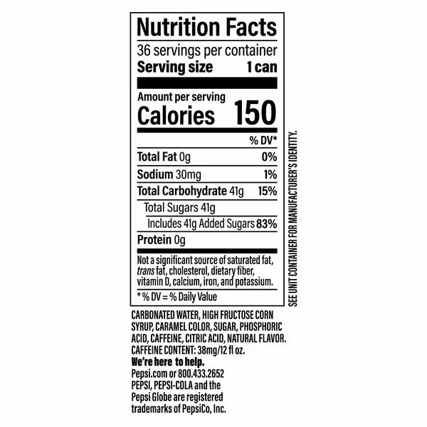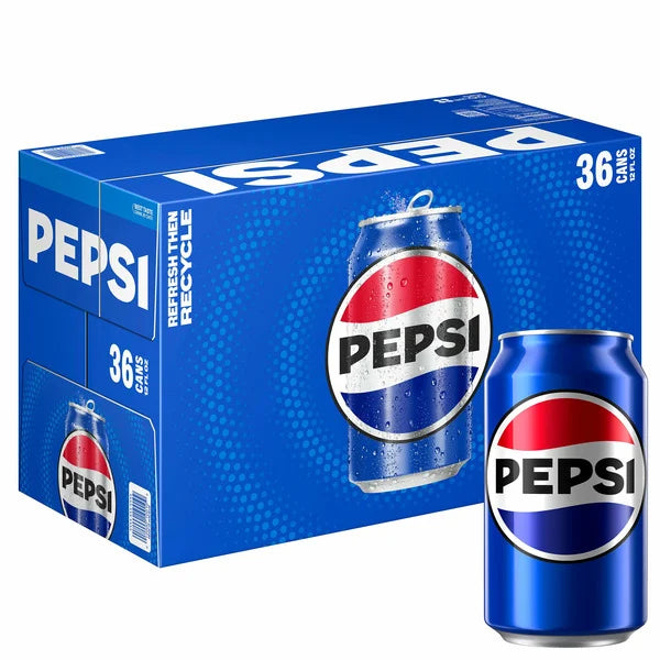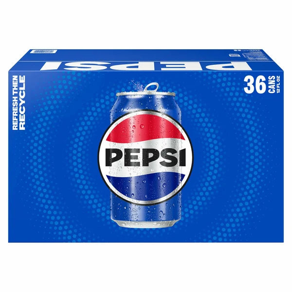 Pepsi, the iconic cola beverage, is available in a convenient 36-count package. This refreshing and invigorating soda offers a bold and crisp flavor that is sure to satisfy your thirst. Perfect for parties, gatherings, or simply stocking up at home, Pepsi provides a classic and enjoyable drink option for any occasion. Enjoy the taste of Pepsi and experience the timeless appeal of this beloved beverage.