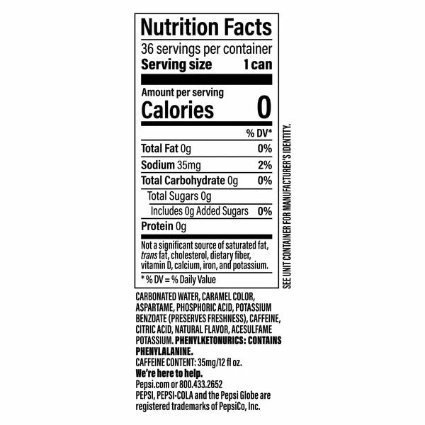 Diet Pepsi, 36 ct, 12 oz, offers a refreshing, calorie-free alternative for those who enjoy the bold taste of Pepsi without the sugar. Each can provides the same crisp and invigorating flavor, making it a great choice for anyone looking to enjoy a guilt-free beverage. This pack of 36 ensures you have plenty of cans to share with family, friends, or coworkers, perfect for gatherings, parties, or simply stocking up for personal enjoyment. The convenient 12 oz size makes it easy to take on the go or enjoy at home, providing a satisfying and thirst-quenching experience every time. With Diet Pepsi, you can indulge in the iconic taste you love while maintaining your dietary preferences.