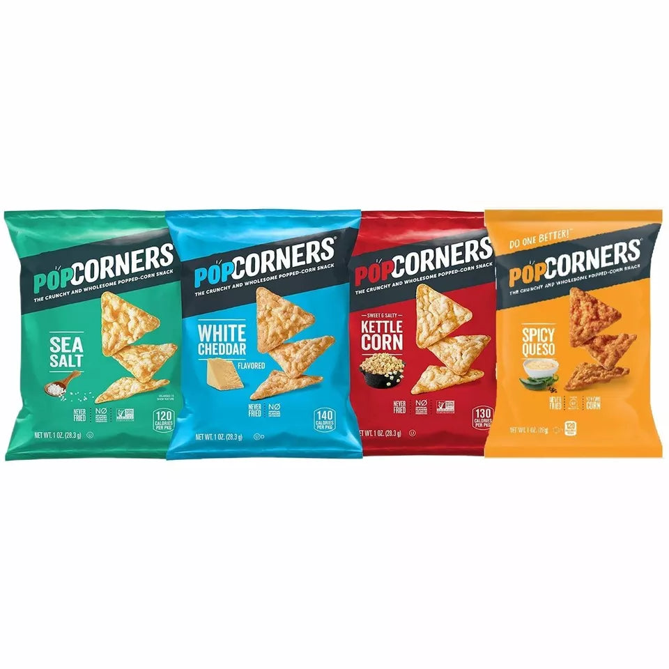 PopCorners Popped Corn Snacks Variety Pack is a delightful mix of crunchy and flavorful snacks. This 30-count pack includes 1 oz bags of four delicious flavors: Sea Salt, Spicy Queso, Kettle Corn, and White Cheddar. Each popped-corn chip is made with sunflower oil, cane sugar, and salt, offering a sweet and salty experience. These snacks are gluten-free, never fried, and have no artificial flavors, making them a healthier alternative to traditional chips. Perfect for snacking on-the-go, at parties, or as a tasty treat anytime.