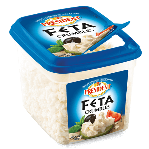 Europe's leading cheese expert. President Feta, created by a family of artisan cheesemakers with over 80 years of French heritage, is recognized as a leading cheese brand throughout Europe. Tangy and delicious President Feta is made using traditional methods and the finest ingredients. We only use milk from cows not treated with rBST. No significant difference has been shown between milk derived from cows treated with artificial growth hormone and those not treated with artificial growth hormone. President Crumbled Feta Cheese, 6 oz is a Refrigerated/ Chilled product that is sold in Plastic packaging.