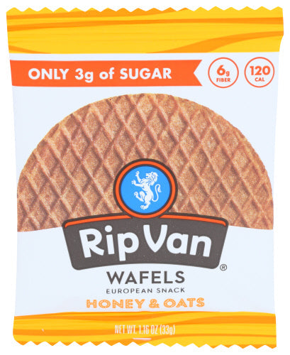 RipVan Honey & Oats Wafels, 1.16 oz, are a delightful and nutritious snack option. Each wafel is made with real oats and organic honey, providing a perfect balance of sweetness and wholesome ingredients. These wafels are low in sugar and free from artificial colors, flavors, preservatives, and high fructose corn syrup. With only 120 calories per wafel, they make for a guilt-free treat that can be enjoyed on the go or paired with your favorite hot beverage. Enjoy the chewy texture and rich flavor of RipVan Honey & Oats Wafels as a satisfying snack any time of the day.