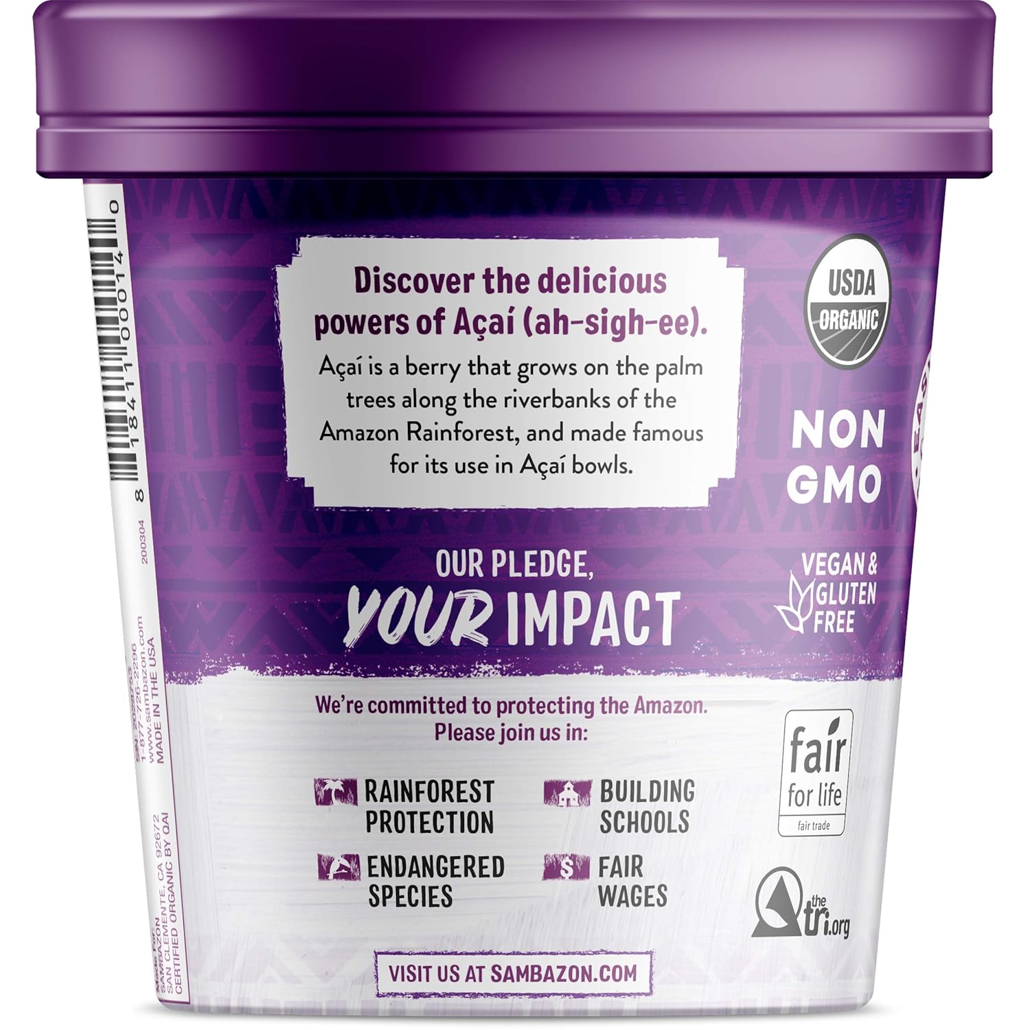 Sambazon Organic Original Açaí Berry Sorbet, weighing 16 ounces, is a refreshing and nutritious dessert option. This sorbet is made with organic açaí berry puree, providing a rich and exotic flavor. It is dairy-free, gluten-free, and non-GMO, making it suitable for various dietary preferences. The sorbet is also Fair Trade certified, ensuring that it is produced ethically and sustainably. Enjoy it as a scoopable açaí bowl or a delightful dessert on its own. With its vibrant berry flavor and smooth texture, Sambazon Organic Original Açaí Berry Sorbet is a delicious and healthy treat.