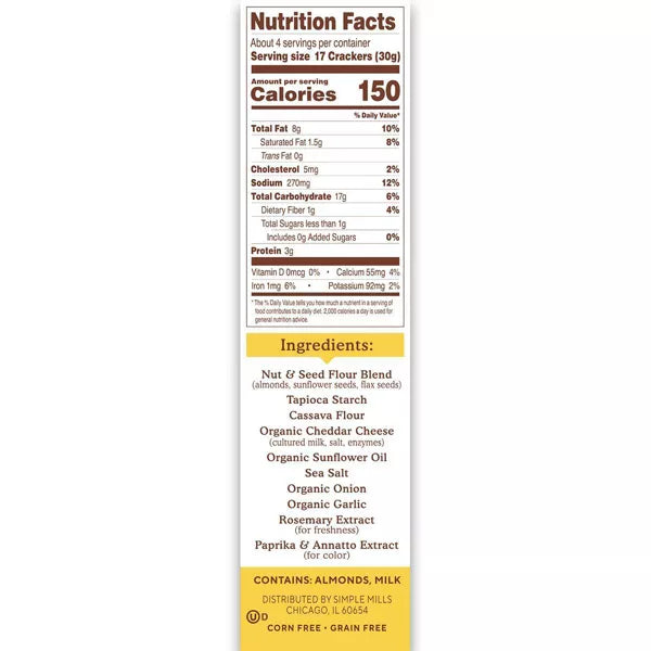 Simple Mills Farmhouse Cheddar Crackers, 4.25 oz