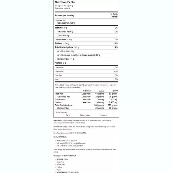 Simply Delish Strawberry Jel Dessert, weighing 0.7 ounces, is a delightful and fruity dessert option. This strawberry-flavored jel dessert mix is crafted with high-quality, non-GMO ingredients and is free from artificial additives and preservatives. It delivers a refreshing and sweet taste that's perfect for satisfying your cravings. Simply add water, mix, and chill to create a delicious dessert in minutes. Whether you're serving it at a gathering, enjoying it as a snack, or using it as a base for creative recipes, Simply Delish Strawberry Jel Dessert is sure to be a favorite.