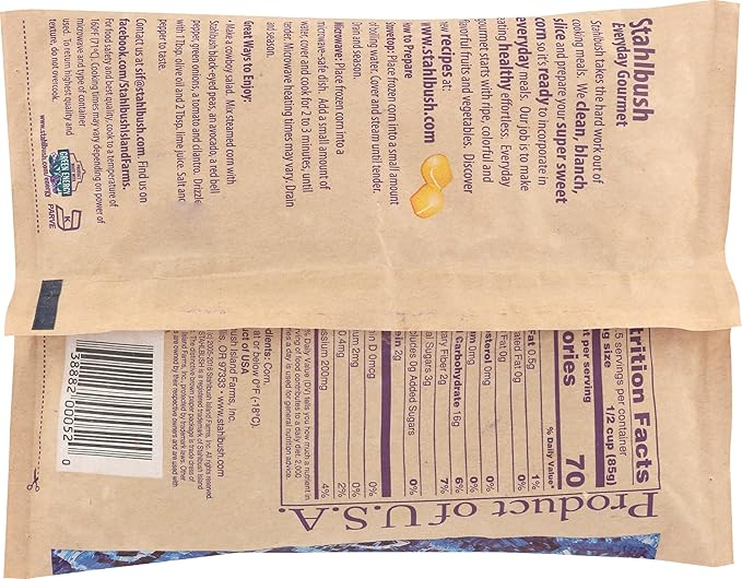 Stahlbush Island Farms Frozen Super Sweet Corn, 10 oz, is a top-quality vegetable product known for its naturally sweet flavor and crisp texture. Harvested at the peak of ripeness, this corn is quickly frozen to preserve its taste and nutritional value. Perfect for adding to salads, soups, casseroles, or serving as a side dish, this super sweet corn offers a versatile and delicious option for your meals. The 10 oz bag is convenient for regular use and helps maintain the freshness of the corn. Enjoy the vibrant taste and health benefits of Stahlbush Island Farms Frozen Super Sweet Corn in your favorite recipes.