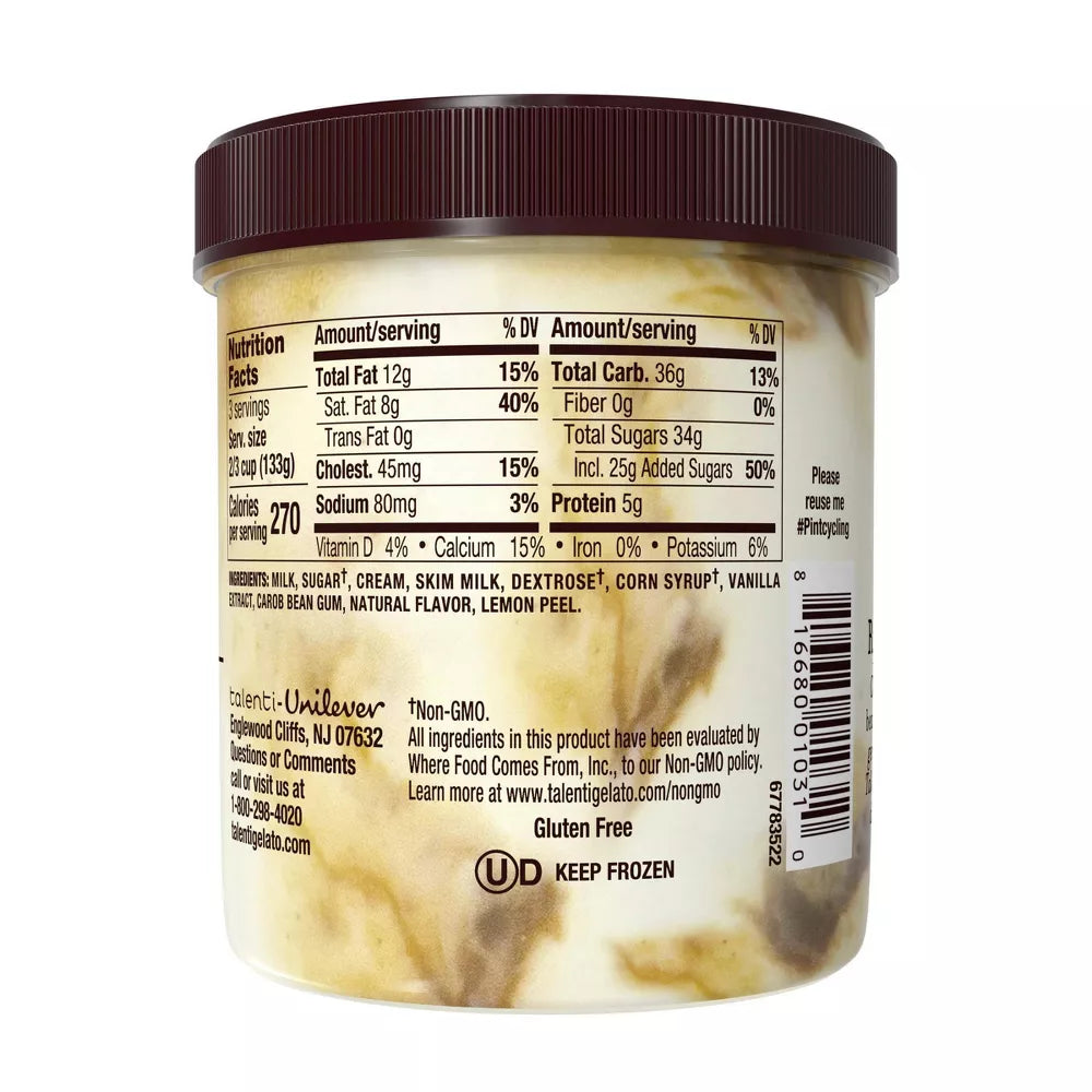 - Talenti Vanilla Caramel Swirl Gelato Ice Cream is a decadent and creamy treat. Each 16 oz container is made with high-quality ingredients, including fresh milk, cream, eggs, and a rich vanilla bean base. Swirled with luscious caramel, this gelato offers a perfect balance of sweet and creamy flavors. Talenti is committed to using natural and non-GMO ingredients, ensuring a delicious and authentic gelato experience. Enjoy the indulgent taste of Talenti Vanilla Caramel Swirl Gelato Ice Cream, perfect for satisfying your sweet tooth.