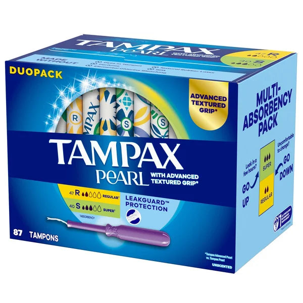 Tampax Pearl Tampons, Regular and Super, Variety Pack, 87 ct