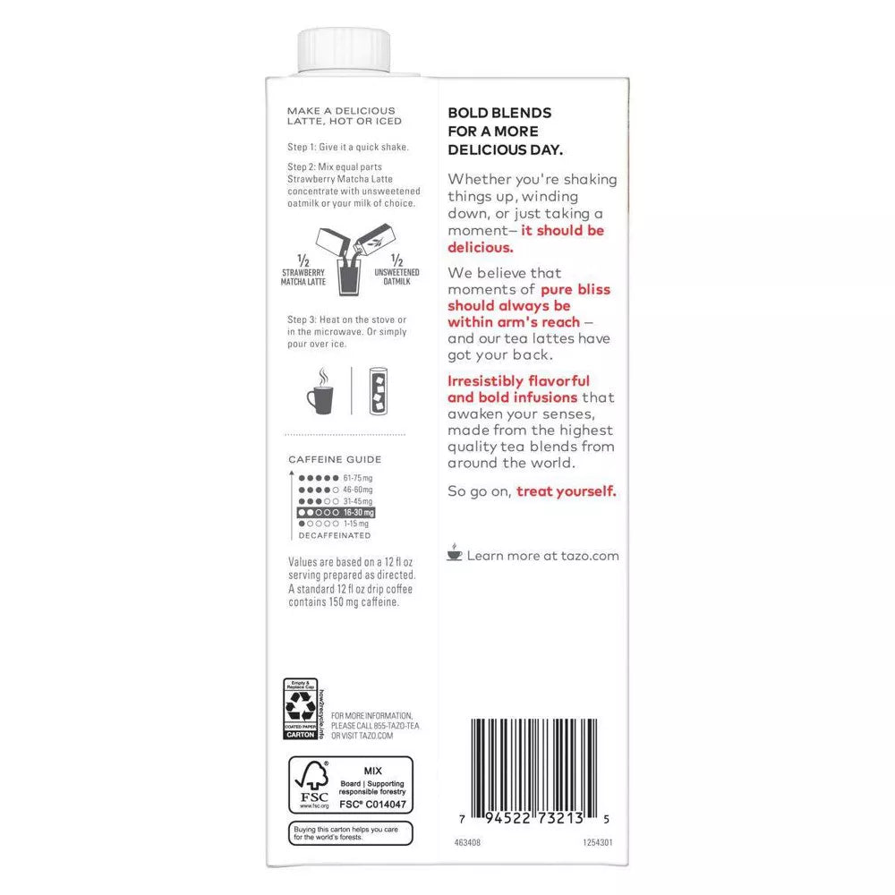Tazo Strawberry Matcha Latte Sweetened Green Tea Concentrate - 32 fl oz