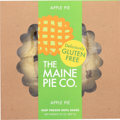 The Maine Pie Co. Frozen Apple Pie is a delicious and convenient dessert option. Each 32 oz pie is made with natural ingredients, including locally sourced apples, cinnamon, nutmeg, and clove. The gluten-free crust is crafted from a blend of white rice flour, brown rice flour, potato starch, and tapioca starch, ensuring a flaky and flavorful base. This pie is free from unnatural additives and preservatives, making it a wholesome choice for any occasion. Simply bake at home for a warm, homemade taste that pairs perfectly with a scoop of vanilla ice cream.