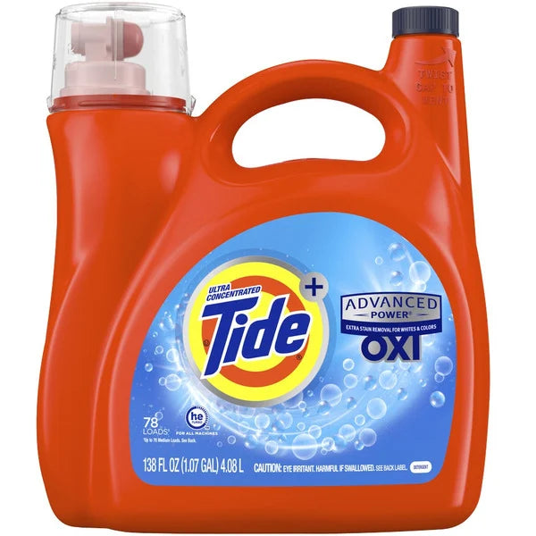 Tide Liquid Laundry Detergent, Advanced Power with OXI, Ultra Concentrated, HE Compatible, Original, 138 fl oz, 78 Loads